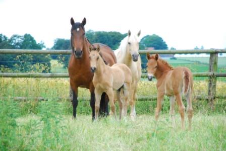 Unsere Stuten werden nah am Haus, mit „Familienanschluss“ gehalten. Sie leben ganzjährig in einem Offenstall, mit großem Paddock und pferdegerechter Weide, wodurch sie gesund und robust sind. Unser Tierarzt sieht sie eigentlich nur zu den regelmäßigen Impfungen und bei Kontrollbesuchen während der Trächtigkeit. Auf Grund dieser naturnahen Haltungsform sind auch unsere Fohlen quicklebendig und entwickeln sich prächtig, regelmäßige Entwurmung, erforderliche Impfungen und bestes Aufzuchtfutter sind selbstverständlich. Auf der großen Weide können sie nach Herzenslust toben und stärken so nachhaltig ihre Muskulatur, ihr Knochengerüst und ihren Sehnenapparat. Beste Voraussetzung also für ein gesundes und langes Pferdeleben!