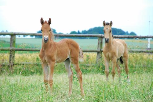 Karolle und Sheherazade schenkten uns 2011 zwei prächtige farbige Hengstfohlen, den fuchsfarbenen Khassim und den Falben